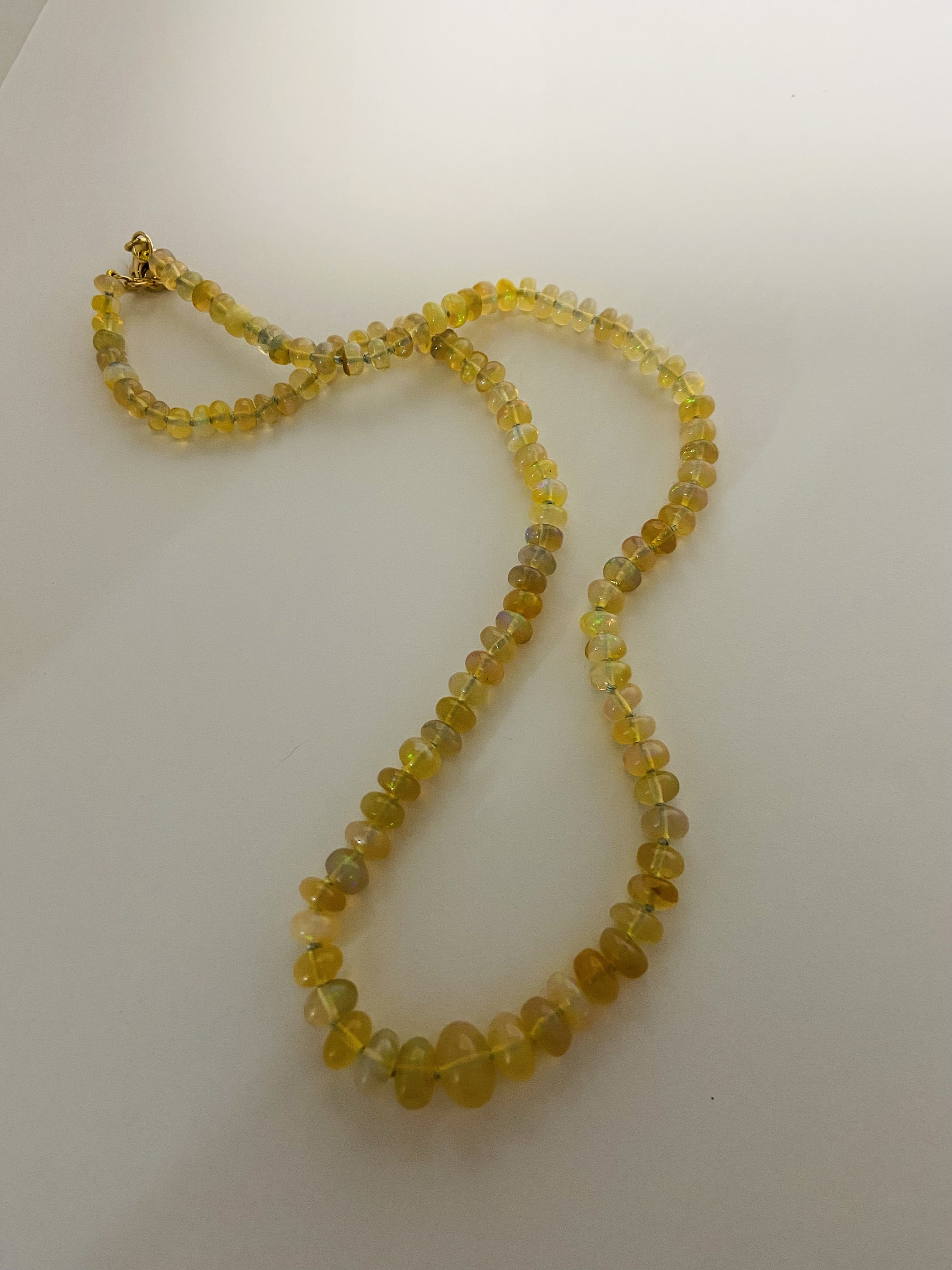 Rare Golden Ethiopian opal beaded necklace with 14k lobster clasp. Gifts for her