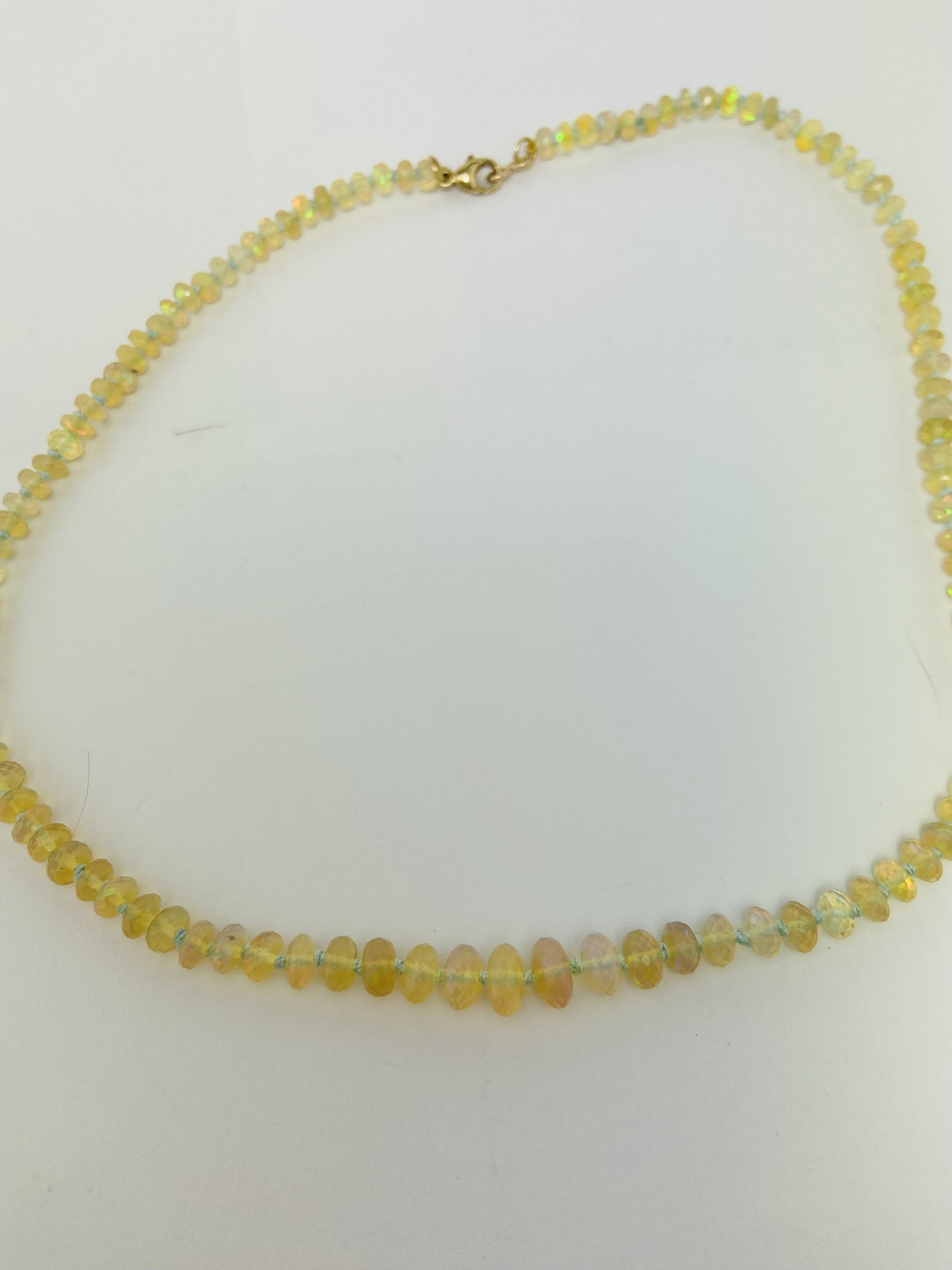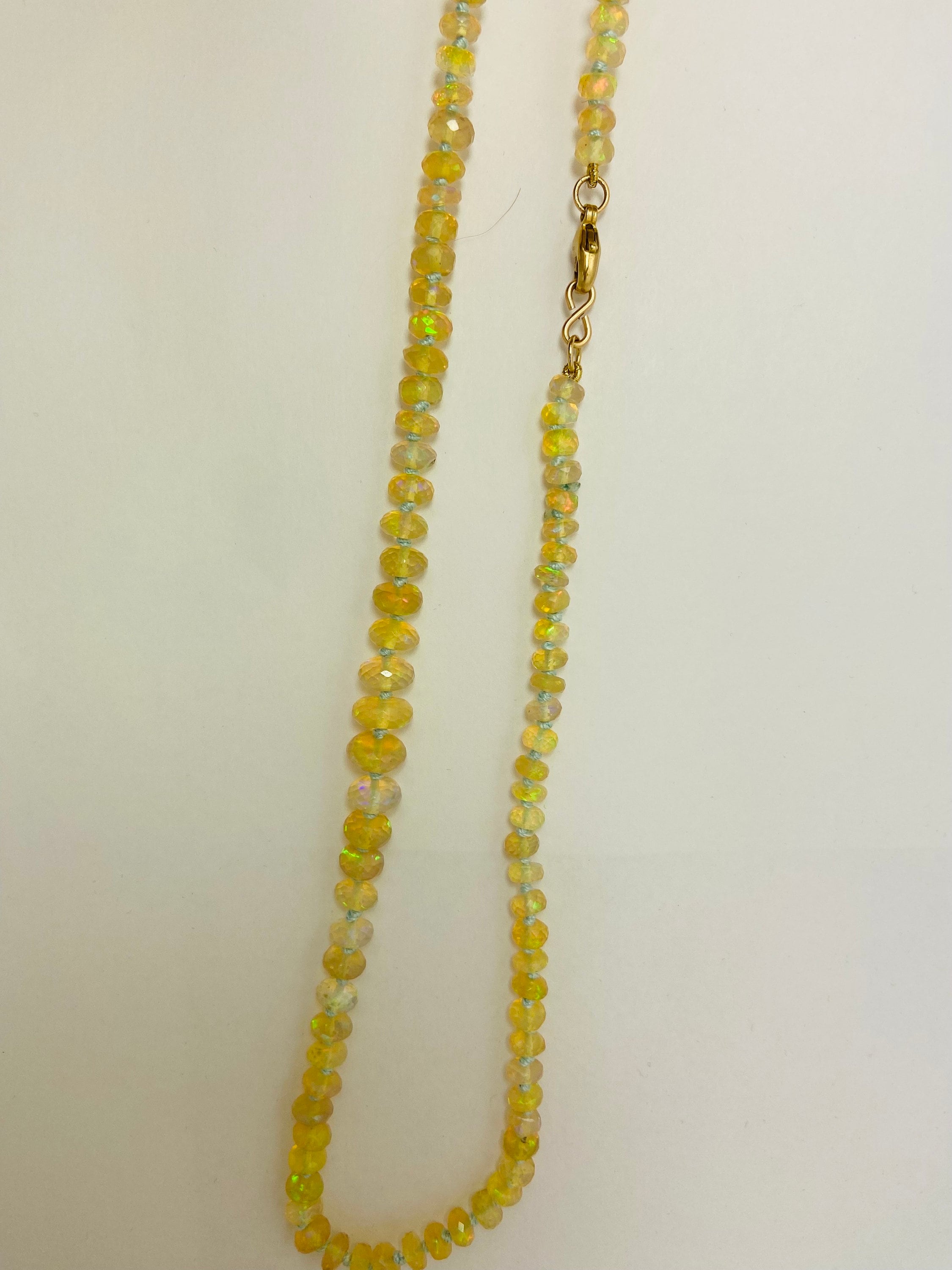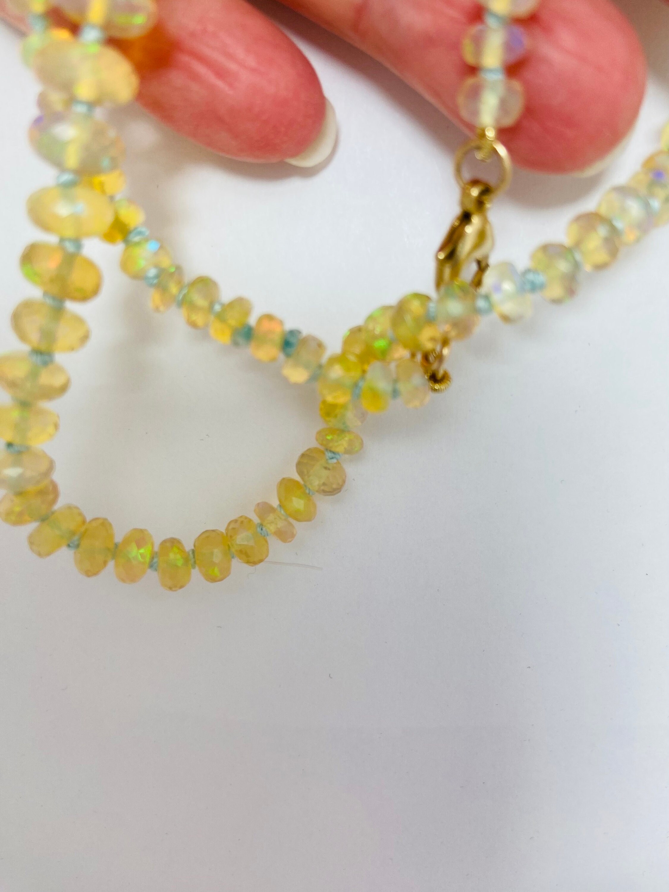 Rare Faceted Golden Ethiopian opal beaded necklace with 14k lobster clasp