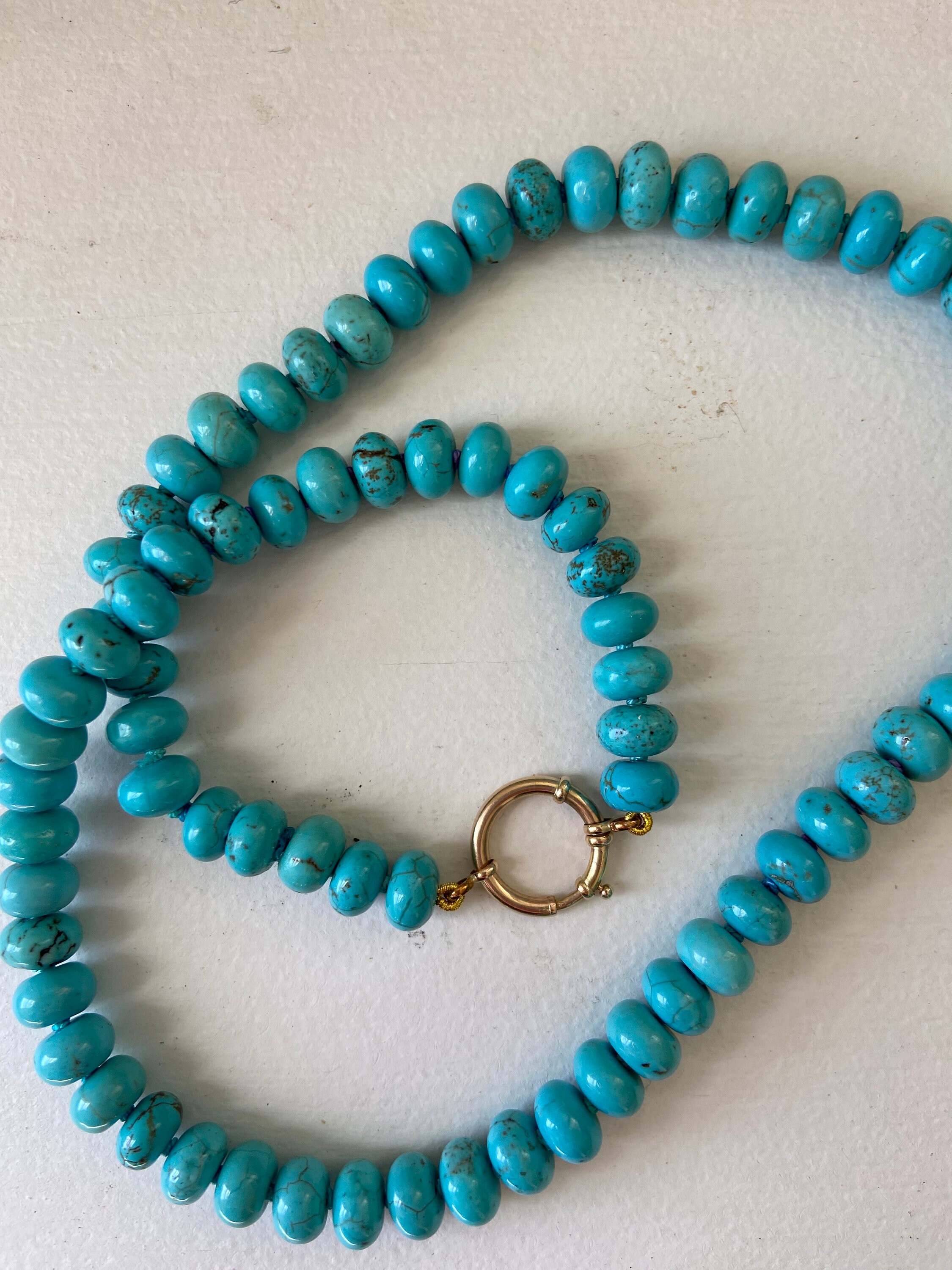 Hand knotted beaded Kingsman Turquoise necklace on 14kt sailor wheel clasp gifts for her