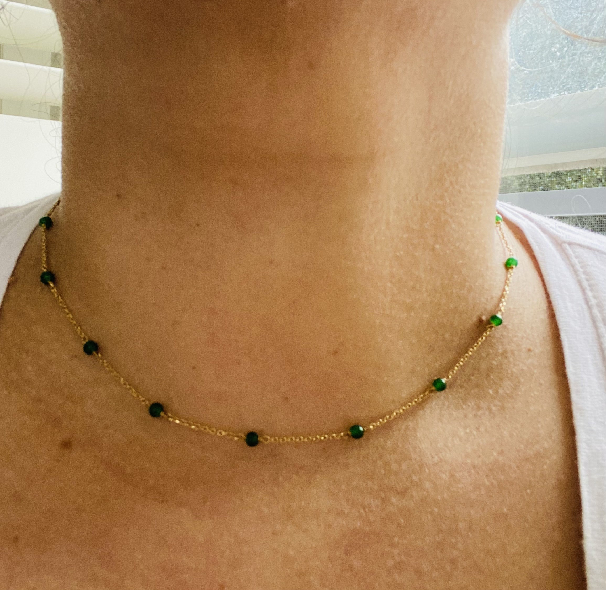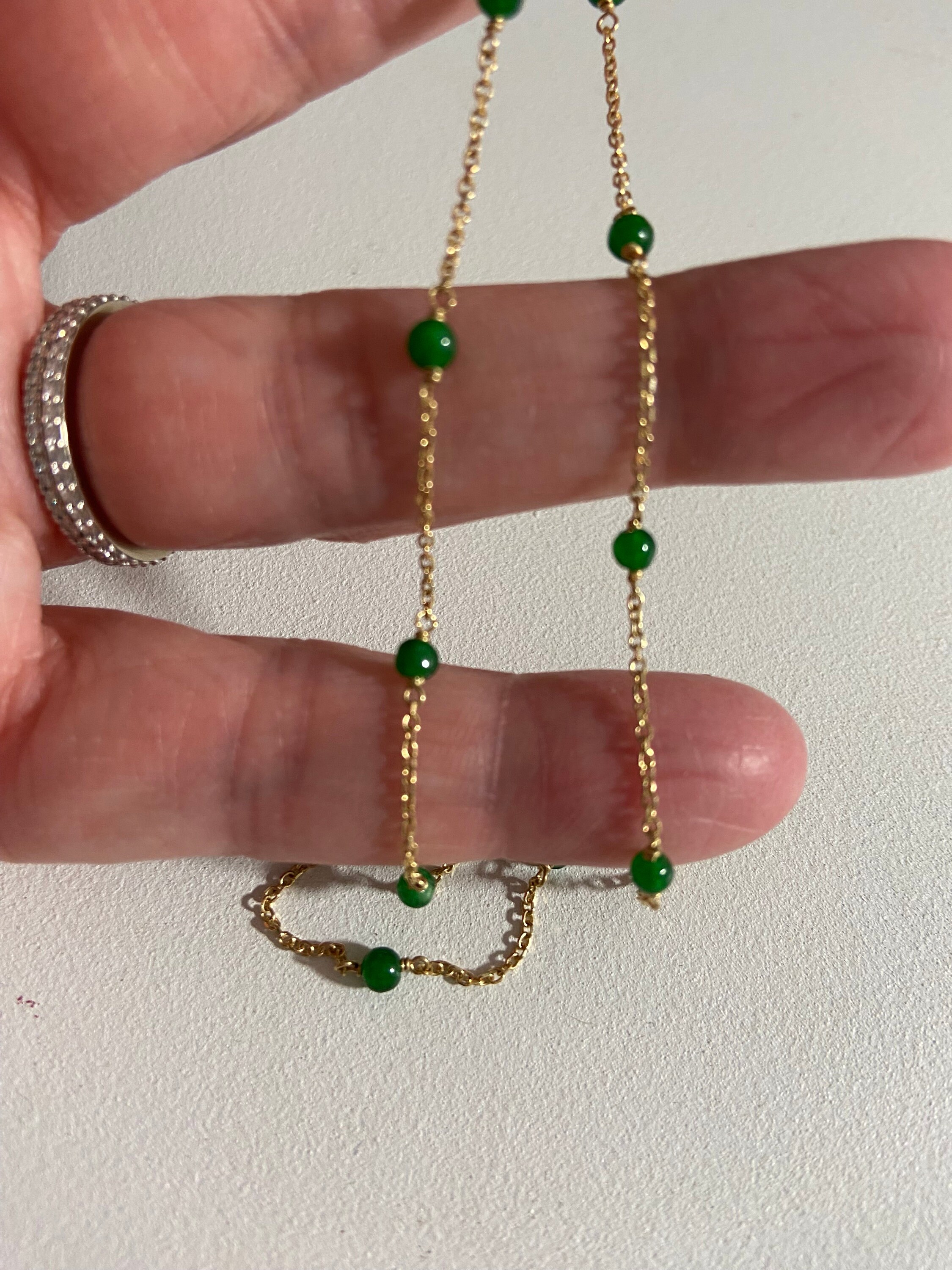 Handmade chain links 14kt Gold necklace, length is 16 inches long. I have taken the time to forge this by hand. One of a kind from my shop. I made this necklace with small 3 mm Crystal Quartz beads on chain links. Gifts for her, valentines gifts, birthstone beads.