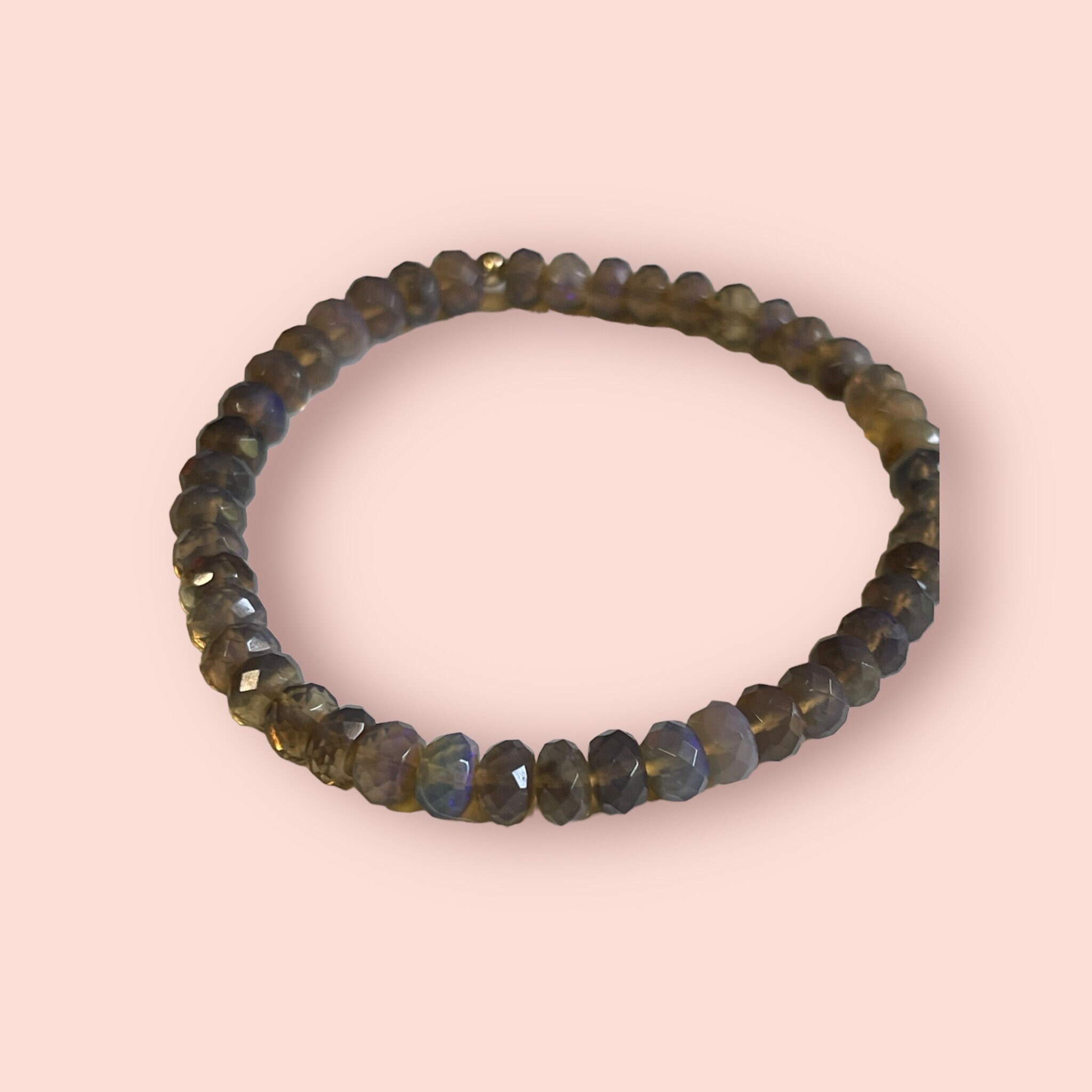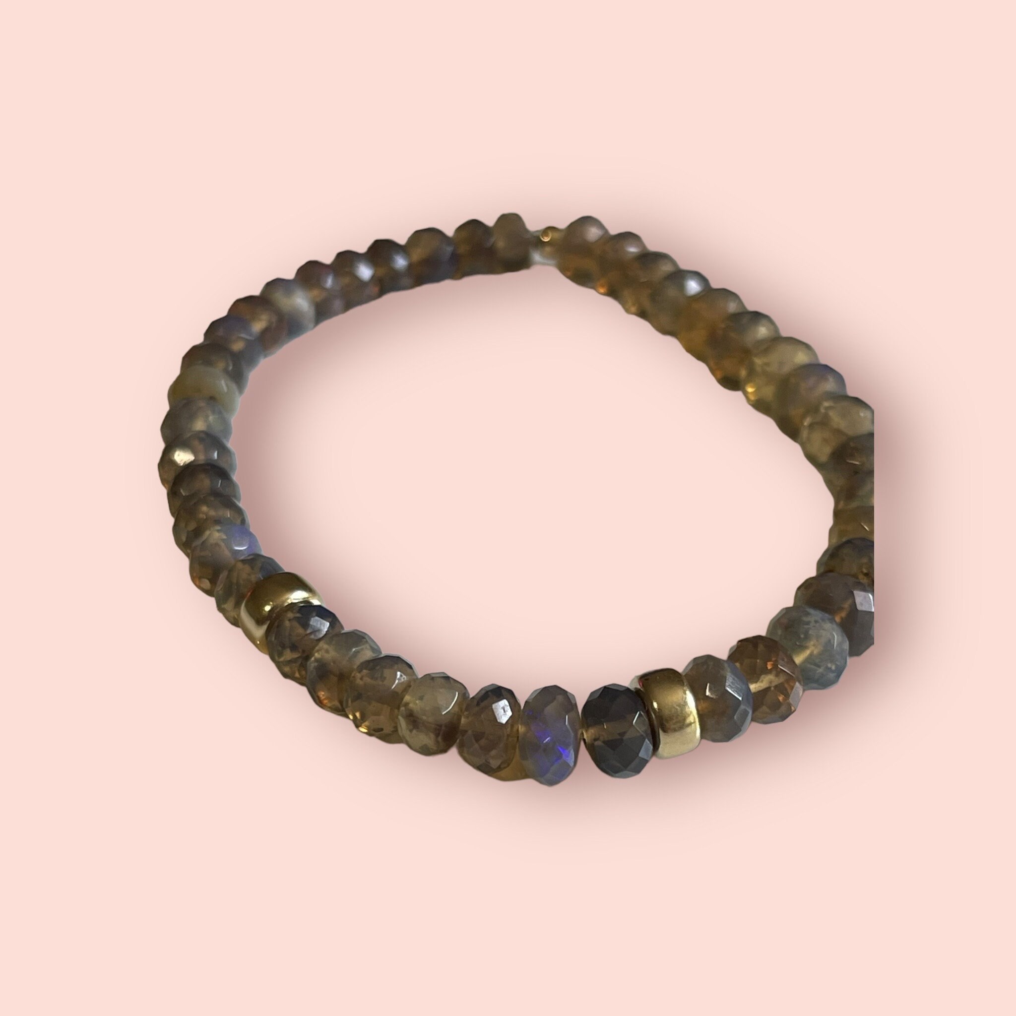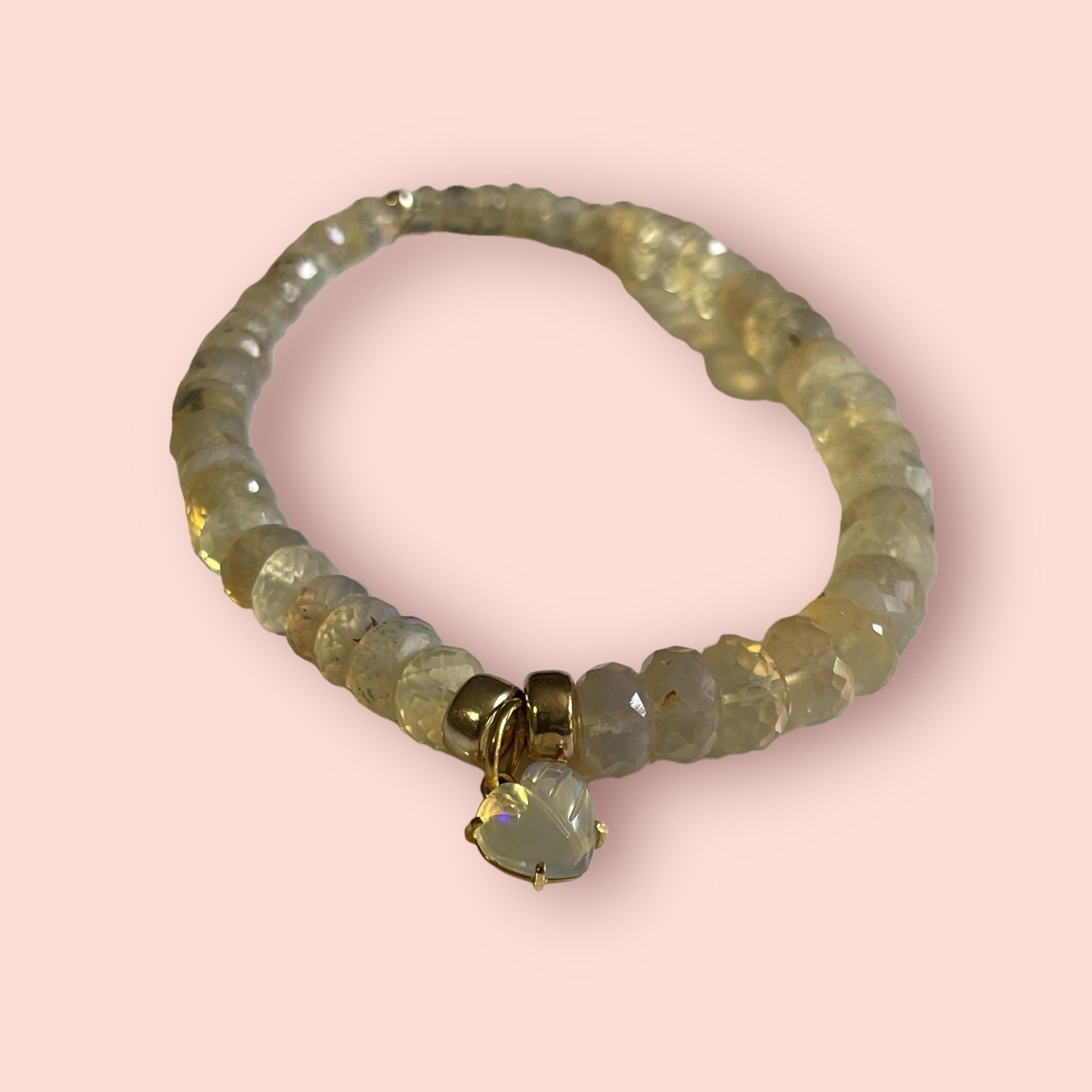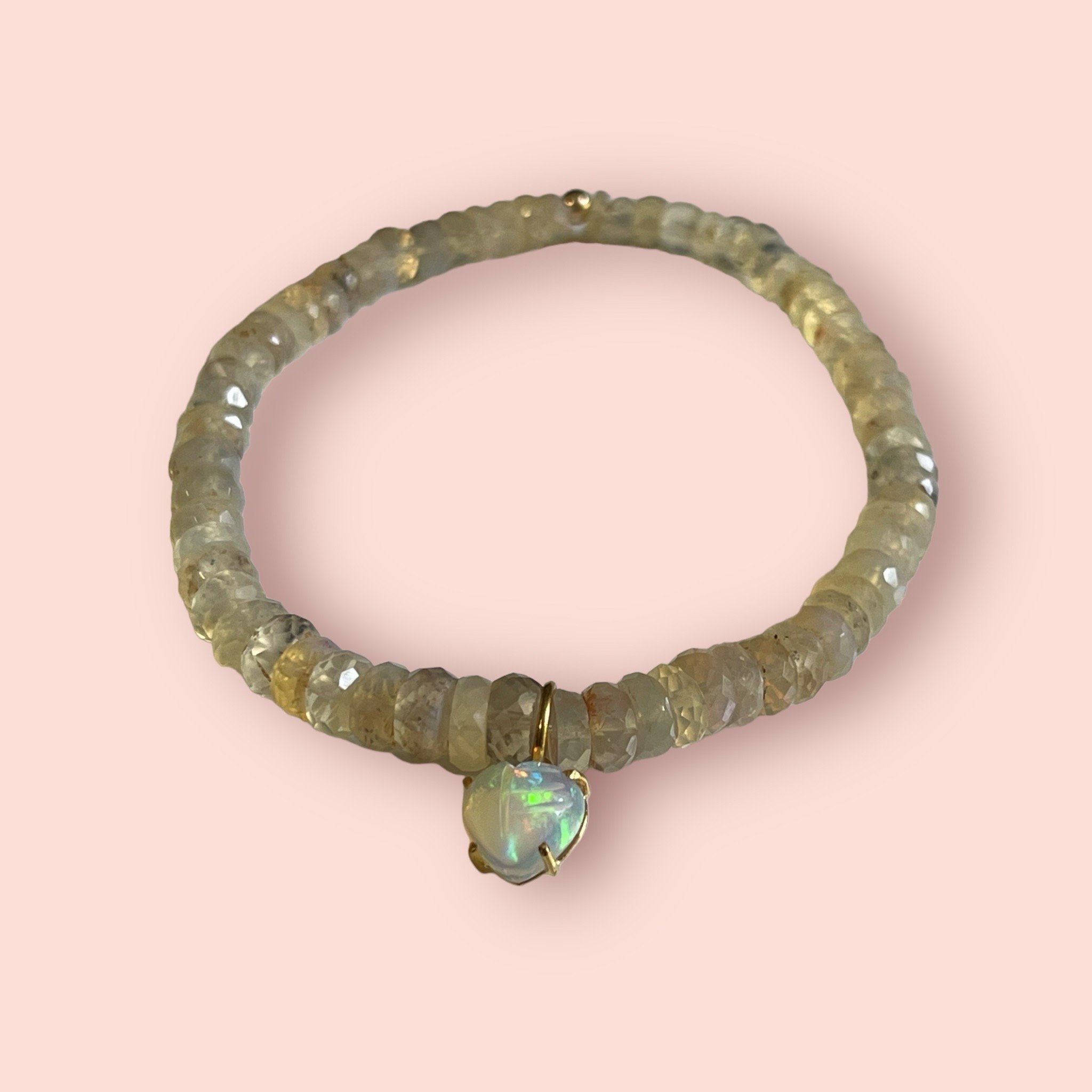 Australian Opal Stretchy Bracelet: Solid Gold Charm, Crystal & Lavender Opal