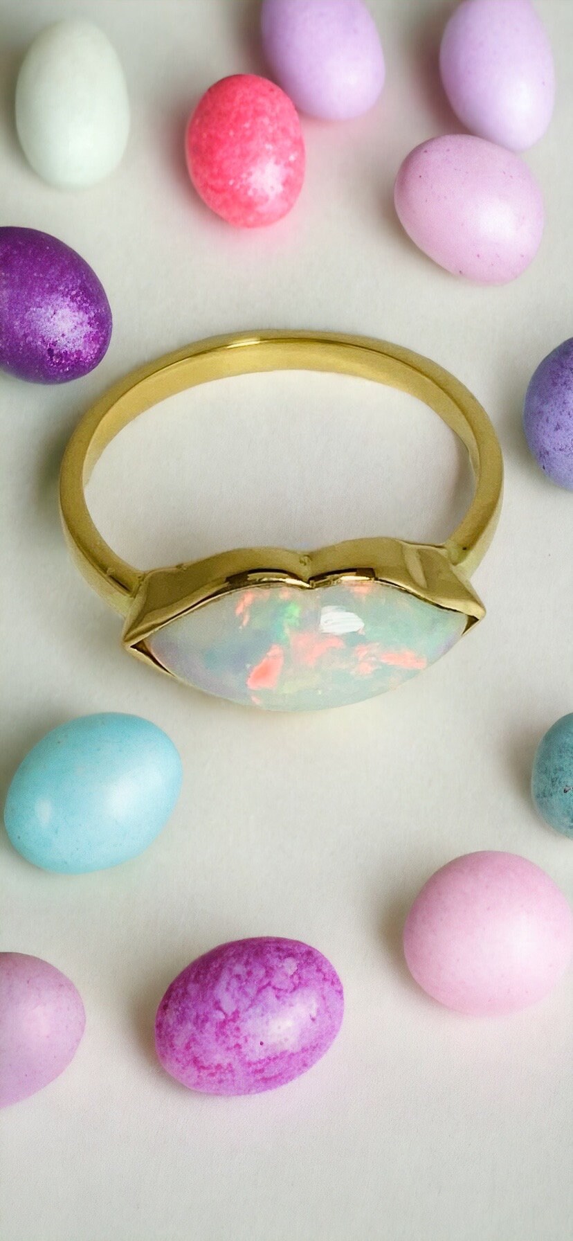 Ethiopian Opal 14kt gold ring size 6. Prefect gift for mom, gifts for her or loved ones. Only one available. Handmade, please allow time for workmanship and mail delivery. Due to the nature and handmade item no piece will be the same. Please message seller if you want multiples.